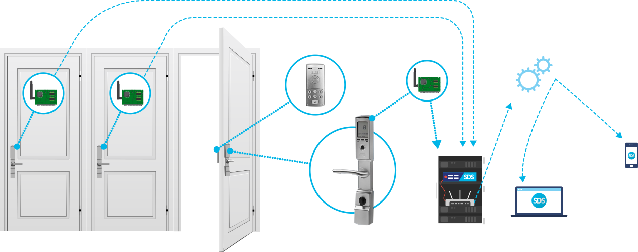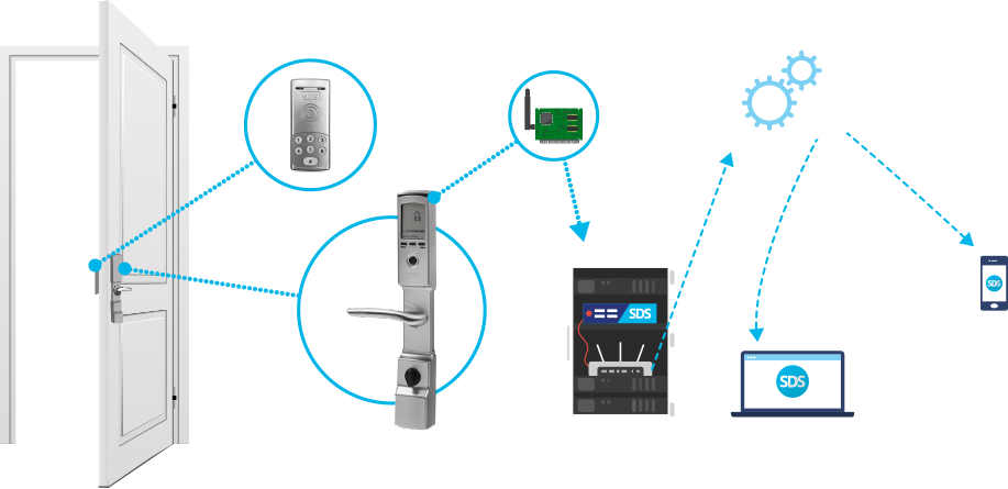 Controller that remotely connects with the internal system via a secured protocol and with the Adios cloud through the router
